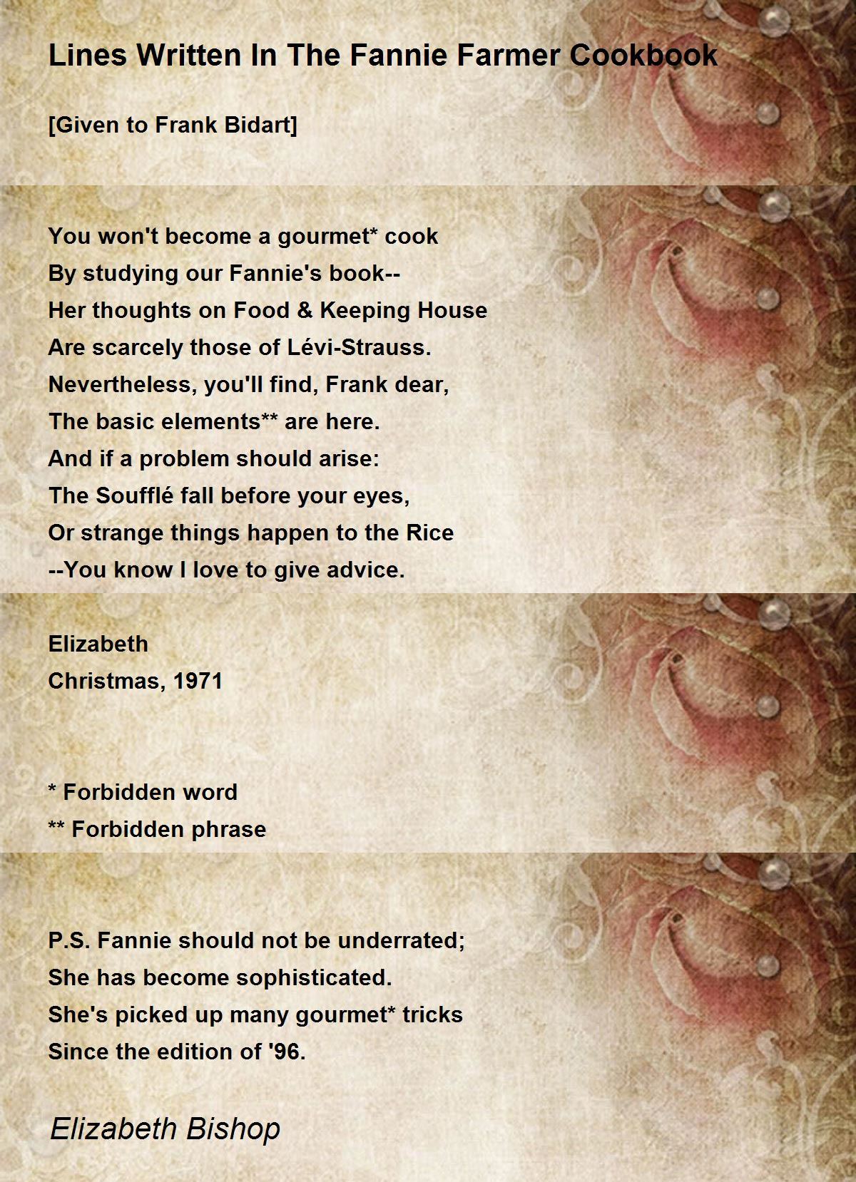 lines written fannie farmer cookbook poem